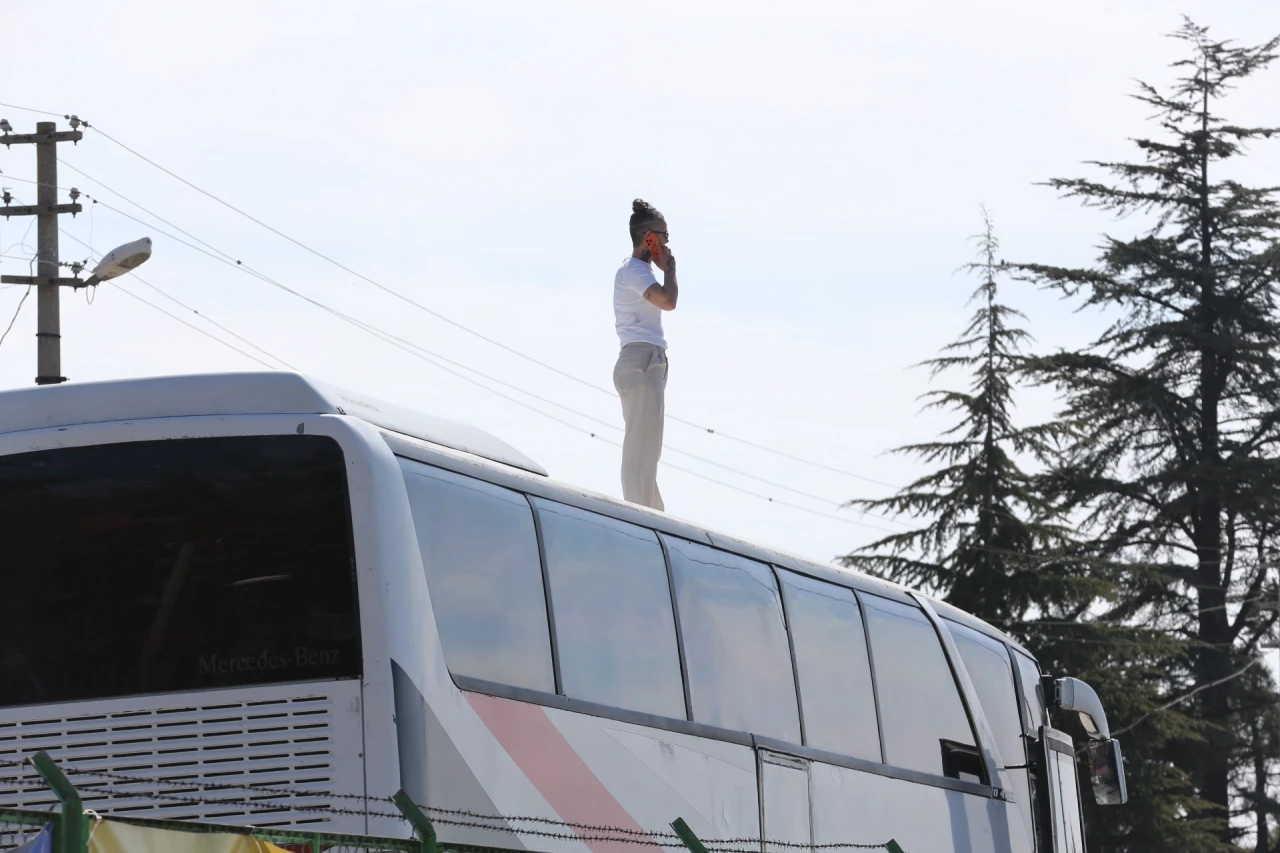 Otobüsün tepesinden yönetti