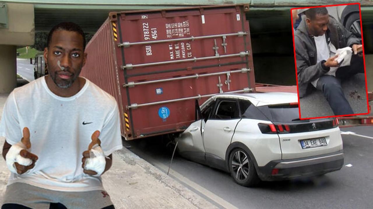 DHA - Bakırköy'de TIR'ın dorsesi üst geçide çarptıktan sonra Anadolu Efes'te oynayan Bryant Dunston'ın kullandığı otomobilin üzerine devrildi. Kazada yaralanan Bryant Dunston hastaneye kaldırıldı. Dunston'ın kaza sonrası çekilen görüntüleri ortaya çıktı.