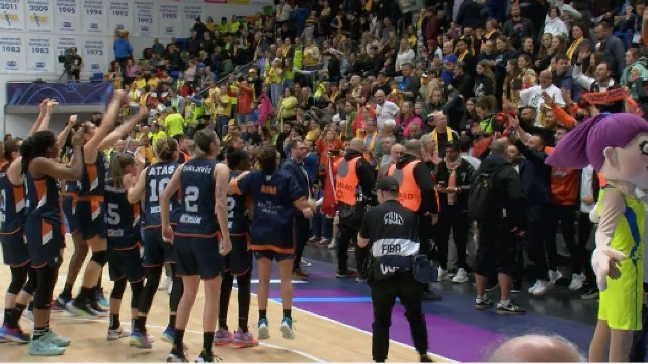 Ay-Yıldızlı bayrağı dalgalandırmak isteyen oyuncular, sahada çirkin bir tavırla karşı karşıya kaldı. Sahadaki güvenlik görevlisinin müdahalesine rağmen Türk bayrağını alan basketbolcular sonrasında ise organizasyondaki bir başka yetkilinin engellemesiyle karşı karşıya kaldı.
