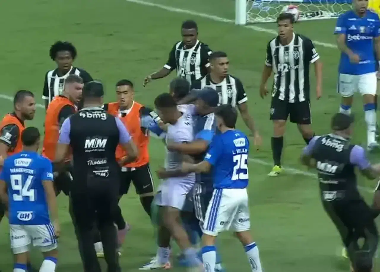 Brezilya futbolunun en sert rekabetlerinden biri olan Cruzeiro – Atletico Mineiro derbisi, bu kez futbol yerine saha içindeki gerginlikle konuşuldu. Mücadele sırasında iki takım oyuncuları arasında yaşanan tartışma kısa sürede büyüyerek kavgaya dönüştü.
