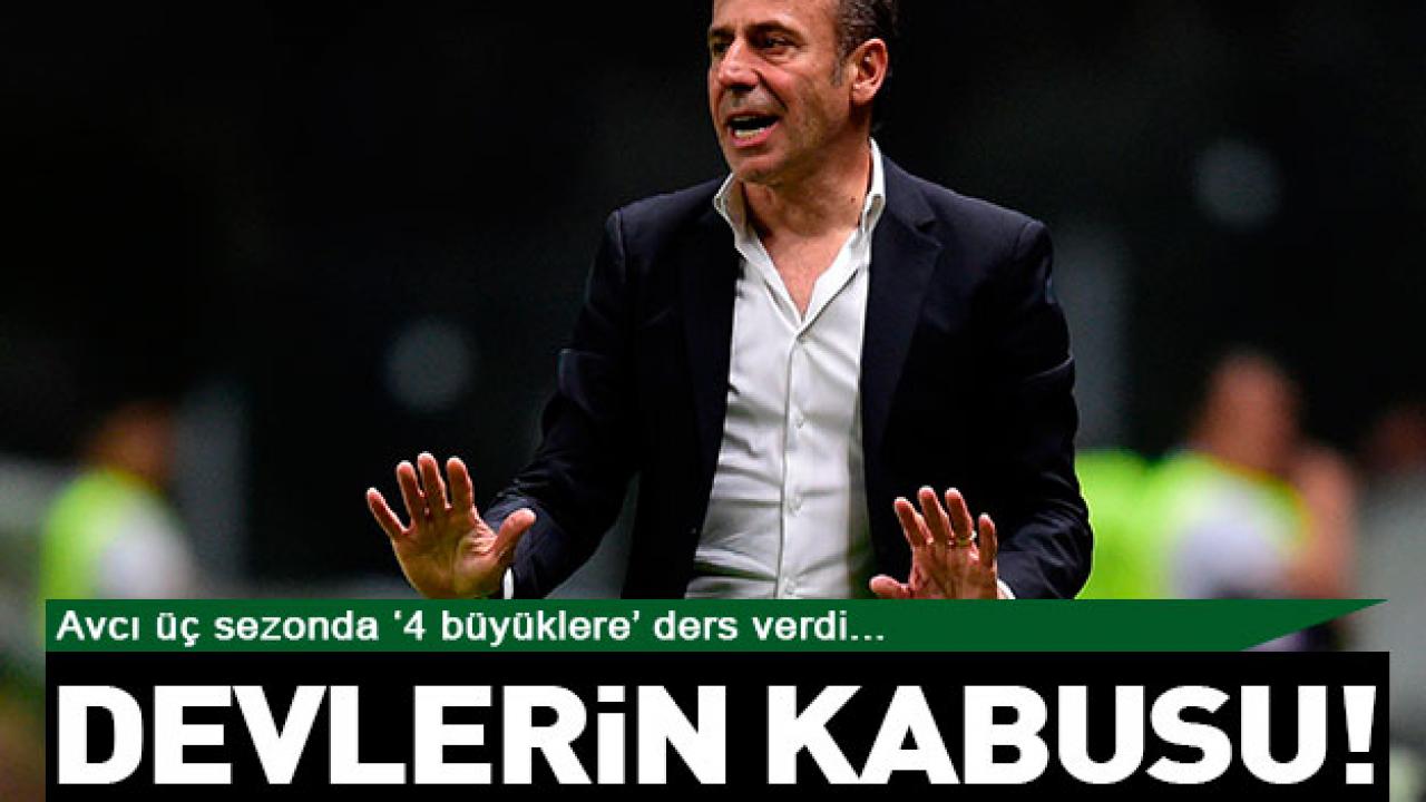Medipol Başakşehir, Beşiktaş'ı yenip şampiyonluk yarışına ağırlığını iyice koyarken, teknik direktörü Abdullah Avcı da üç büyüklere karşı müthiş bir başarı yakaladı. Tecrübeli çalıştırıcı, kariyerinin son üç sezonunda Beşiktaş, Fenerbahçe ve Galatasaray'a karşı 26 maçta 12 kez sahadan galibiyetle ayrıldı. 9 kez berabere kalıp, sadece 5 mücadelede yenilgi gördü. Abdullah Avcı, Beşiktaş Teknik Direktörü Şenol Güneş'e de büyük üstünlük sağladı. Medipol Başakşehir'in hocası, Şenol Güneş'li Beşiktaş'a karşı 6 karşılaşmada 1 yenilgi aldı. 2 maçı turuncu-lacivertliler kazanırken, 3 mücadele ise beraberlikle sonuçlandı. Trabzonspor karşısında ise son 3 sezonda oynana 6 maçta 3 galibiyet 3 de beraberlik elde etti.