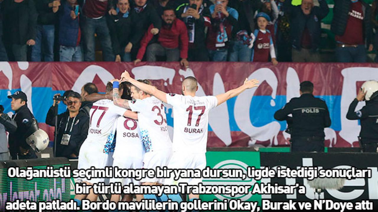 Trabzonspor dün ligin formda ekibi Akhisar’ı Okay, Burak ve N’Doye’un golleri ile yendi ve Avrupa kupaları iddiasını sürdürdü. Geçen hafta F.Bahçe’yi deplasmanda yıkan Ege ekibinin sayısını Soner attı