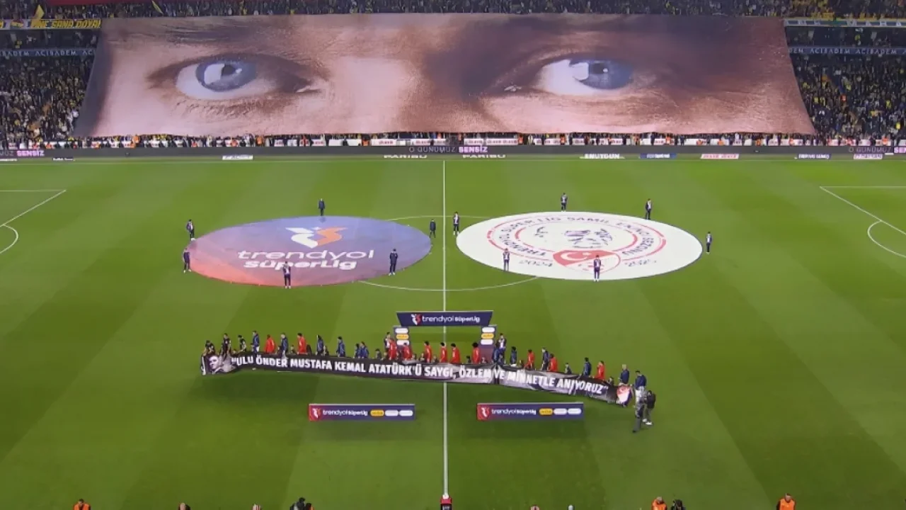 Fenerbahçeli futbolcular ve teknik ekip sahaya çıkarken taraftarlar "Ulu Önder Mustafa Kemal Atatürk’ü saygı, özlem ve minnetle anıyoruz" yazılı pankart açarak Türkiye Cumhuriyeti'nin kurucusuna duyulan minneti ifade etti. Bu pankart, tribünlerin Atatürk’e olan sevgi ve saygısını bir kez daha gözler önüne serdi. Koreografi ve pankart eşliğinde yapılan saygı duruşu sırasında stadyum adeta Atatürk sevgisiyle yankılandı. Tüm stadyumda dalgalanan Türk bayrakları ve Atatürk’ün gözlerinin bulunduğu pankartla taraftarlar, unutulmaz bir anı yaşadı.