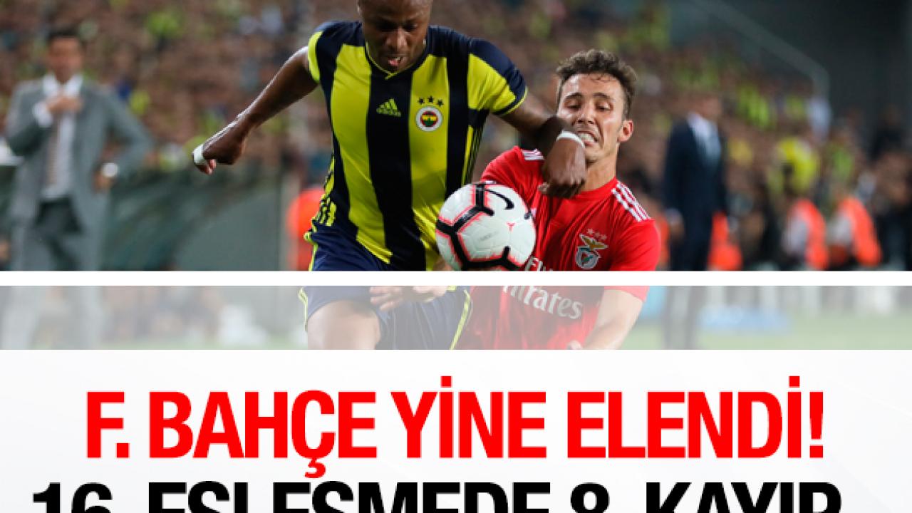 Fenerbahçe, Şampiyonlar Ligi'ne katılabilmek için Benfica karşılaşmasıyla birlikte 16. ön elemesine çıktı. Sarı- lacivertliler Portekiz ekibine elenerek, 8. kez devler sahnesine veda etti. Daha önce ön eleme turlarında 2002- 03'te Hollanda ekibi Feyenoord'la başlayan elenme kabusu, 2006-07'de D.Kiev, 2010-11'de Y.Boys, 2012- 13'te Spartak Moskova, 2013- 14'te Arsenal, 2015-16'da S.Donetsk ve 2016-17'de Monaco'yla devam etti. Temsilcimiz, Benfica'yla bu kötü seriyi 8 ön elemeye yükseltti.