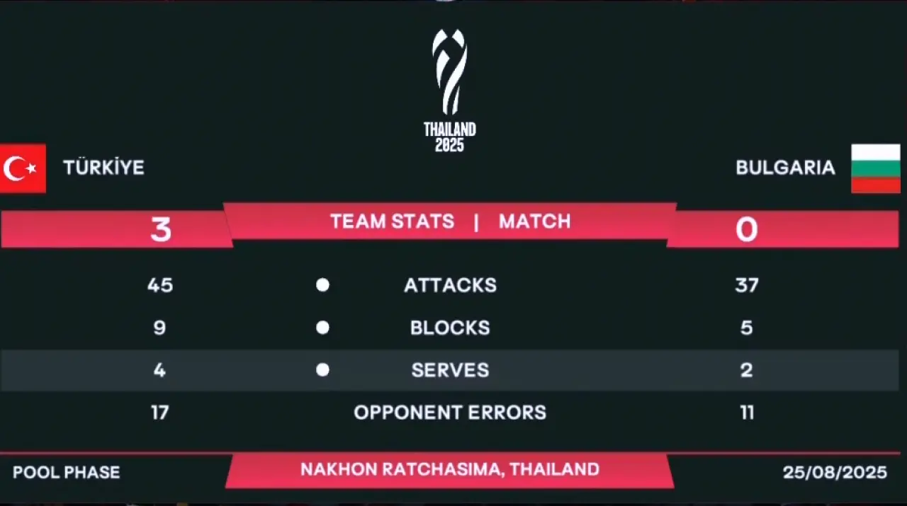 Nakhon Ratchasima’daki Korat Chatchai Spor Salonu’nda oynanan mücadelede Türkiye, hücum gücü ve bloklardaki etkinliğiyle maçı kontrol altında tuttu.