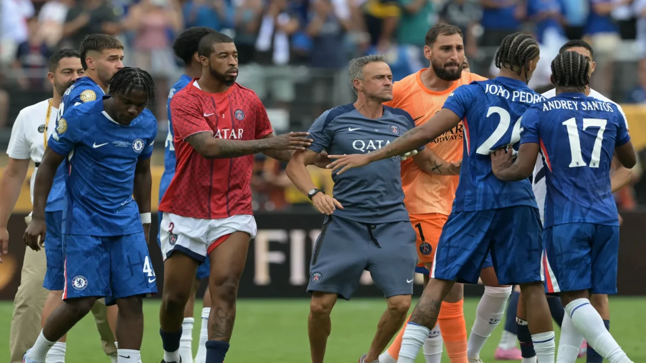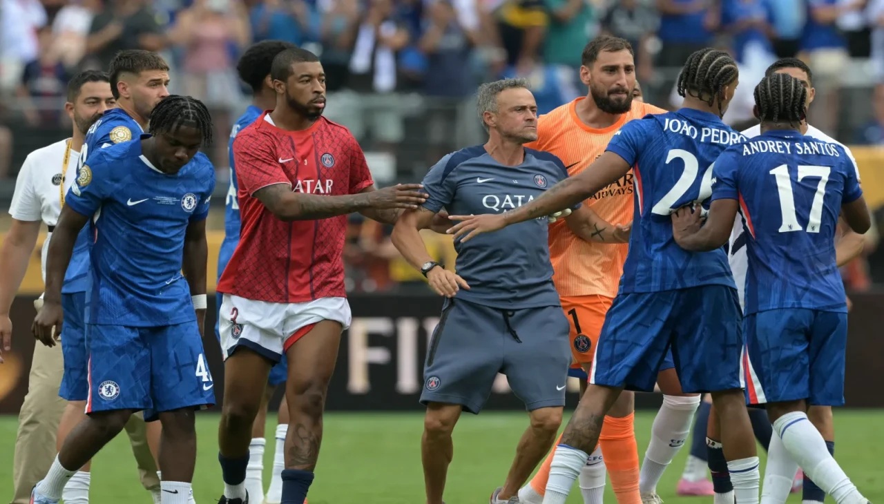 ABD’de düzenlenen Kulüpler Dünya Kupası finalinde futbolseverleri şaşkına çeviren bir olay yaşandı. Chelsea’nin PSG’yi 3-0 mağlup ederek kupaya uzandığı karşılaşma sonrası sahada tansiyon bir anda yükseldi.