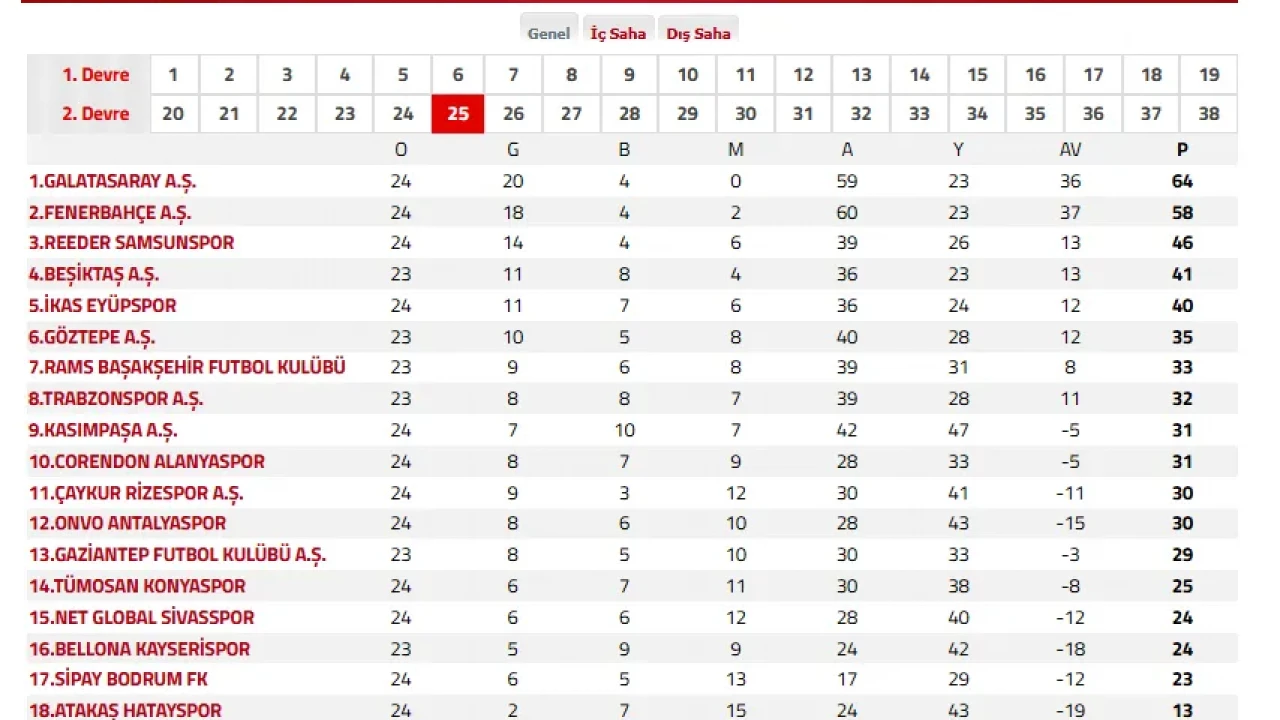 Taraftarlar arasında yaşanan bu kafa karışıklığının ardından Türkiye Futbol Federasyonu (TFF), resmi puan durumunu güncelleyerek doğru tabloyu yayınladı. Güncel listeye göre Galatasaray 6 puan farkla liderliğini sürdürürken, Fenerbahçe ise aynı puan farkıyla takibini sürdürüyor.