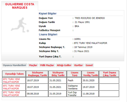 BtcTurk Yeni Malatyaspor, Trabzonspor'a imza atması beklenen Guilherme ile yollarını ayırdı. Malatya ekibi, futbolcunun sözleşmesinin fesih edildiğini Futbol Federasyonu'na iletti.