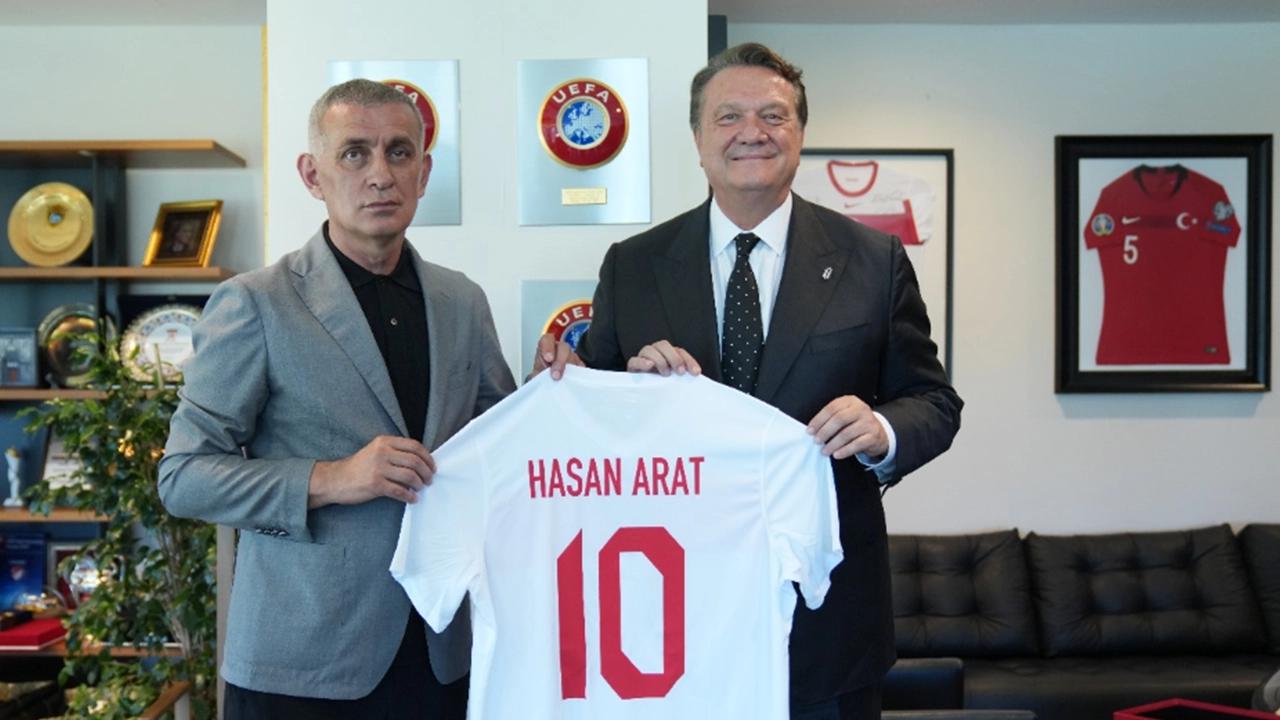 Ziyaretin sonunda TFF Başkanı Hacıosmanoğlu, Hasan Arat'a üzerinde isminin yazılı olduğu bir A Milli Takım forması takdim ederken, Hasan Arat da Başkan Hacıosmanoğlu'na üzerinde isminin yazılı olduğu bir Beşiktaş forması ve bir plaket hediye etti.