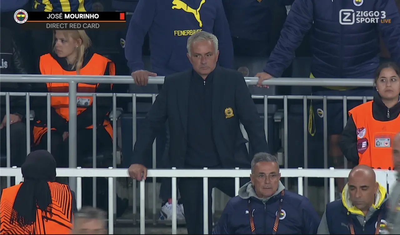 Dün akşam Kadıköy’de oynanan UEFA Avrupa Ligi 3. hafta mücadelesinde Fenerbahçe ile Manchester United karşı karşıya gelmişti. Fenerbahçe Teknik Direktörü Jose Mourinho, maçın 57. dakikasında Osayi-Samuel’in ceza sahası içinde yerde kalmasının ardından penaltı beklemiş ve hakeme yaptığı şiddetli itirazlar neticesinde kırmızı kart görmüştü. Portekizli çalıştırıcı maçın kalan dakikalarını kulübe arkasındaki tribünde geçirmişti.