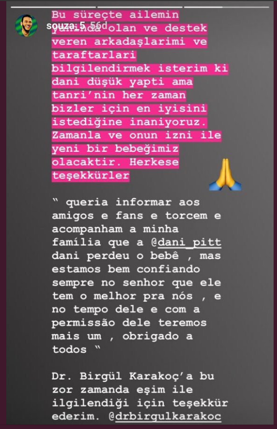 Josef de Souza, hamile olan eşinin düşük yaptığını ve bebeğini kaybettiğini açıkladı.