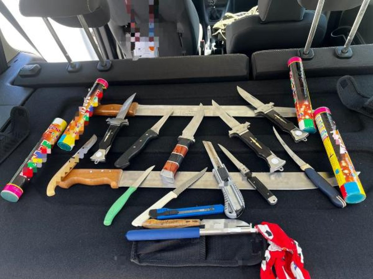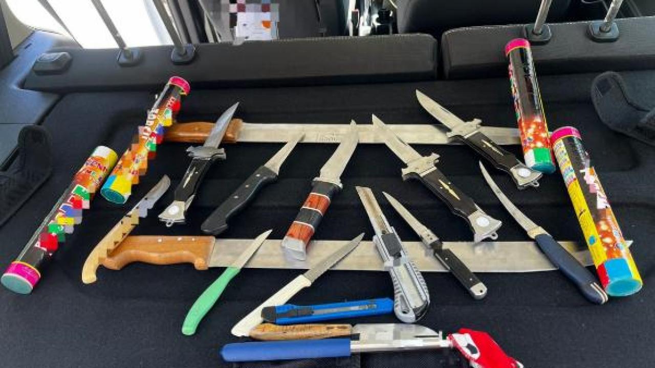 Trabzonspor-Kayserispor maçını izlemek üzere kente gelen Kayserispor taraftarlarını taşıyan otobüslerde çok sayıda bıçak, falçata ve havai fişek ele geçirildi.