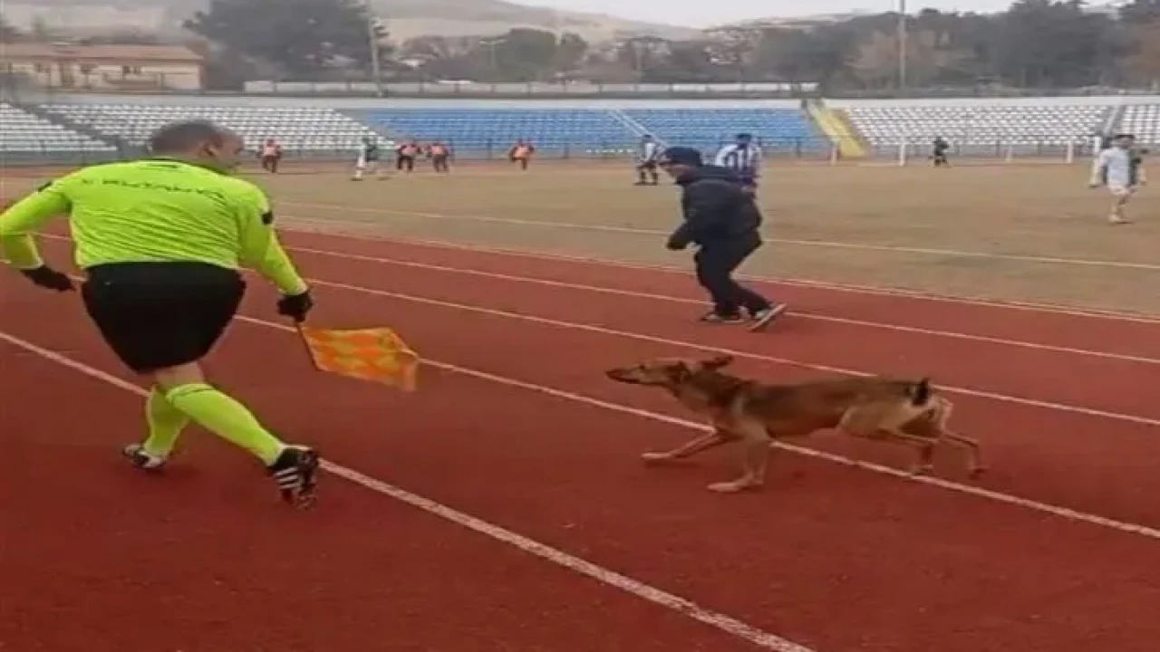 Ankara’da oynanan Beypazarı Belediye Spor ile Başkent Fatih Spor karşılaşmasında sahaya sokak köpeği girdi. Maçın yan hakemi, elindeki bayrağı kullanarak köpeği sahadan çıkardı. O anlar kameraya yansıdı.