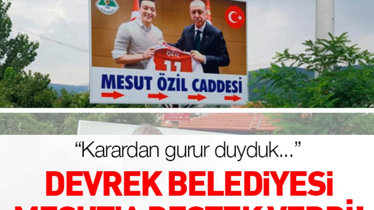 Türk asıllı futbolcu Mesut Özil'in, ırkçı ve ayrımcı saldırılar nedeniyle Almanya Milli Takımı'nı bırakmasının ardından memleketi Devrek ilçesinde, ismini taşıyan caddeye konulan, Almanya Milli Takımı formasıyla fotoğrafının yer aldığı tabela değiştirildi. Arsenal formasını giyen Mesut Özil'in, ırkçı ve ayrımcı saldırılar nedeniyle Almanya Milli Takımı'nı bırakması, memleketi Zonguldak'ın Devrek ilçesinde de yankı buldu. Devrek Belediyesi tarafından Özil'in, Almanya Milli Takımı formasıyla fotoğrafının yer aldığı tabela, Cumhurbaşkanı Recep Tayyip Erdoğan ile Londra'da birlikte çektirdiği fotoğrafının bulunduğu dev tabelayla değiştirildi.