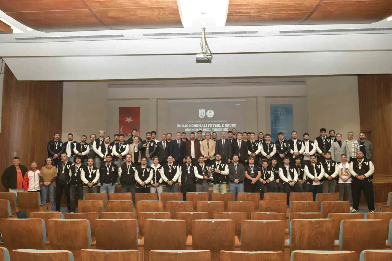 Üniversite yönetiminin de tam kadro destek verdiği törende; MSKÜ Rektör Yardımcısı Prof. Dr. Mustafa Gökçe, Spor Bilimleri Fakültesi Dekanı Prof. Dr. Özcan Saygın, Dekan Yardımcısı Prof. Dr. Tonguç Osman Mutlu ve Öğr. Gör. Zeynep Aydoğan hazır bulundu. Akademisyenlerin ve öğrencilerin yoğun ilgi gösterdiği etkinlikte, şampiyonluk kupasını havaya kaldıran sporculara madalyaları protokol üyeleri tarafından takdim edildi. Bu zaferle birlikte MSKÜ, üniversiteler arası korumalı futbol arenasında artık Süper Lig’de mücadele edecek.