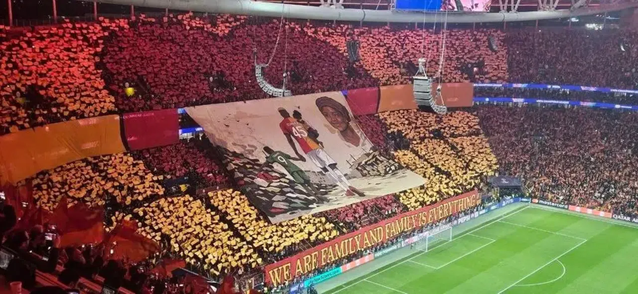 Galatasaray-Liverpool maçı öncesinde sarı-kırmızılı taraftarlar, Victor Osimhen ve annesine özel bir koreografi hazırladı. Tribünlerde, Osimhen’in kucağında kızıyla yürüdüğü ve annesinin görseli yer aldı. Alt pankartta “We are family and family is everything” ifadeleri yer aldı.