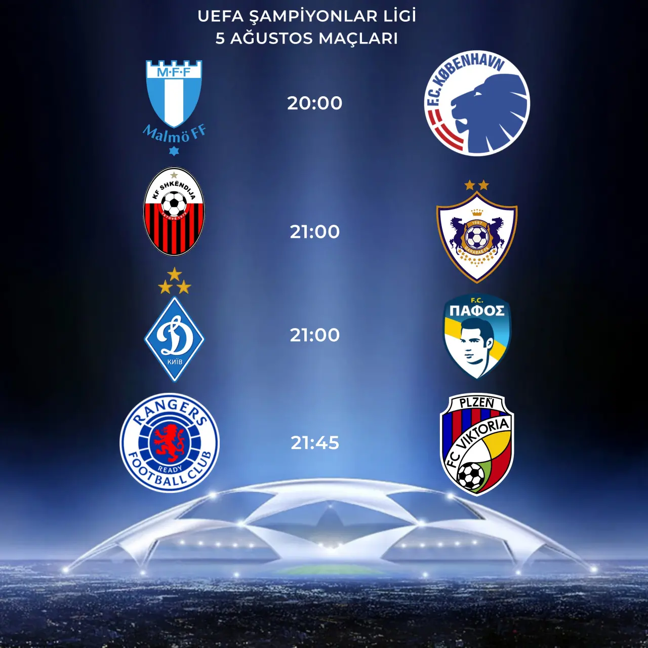 Günün en dikkat çeken eşleşmelerinden biri. İskoç devi Rangers, Ibrox Stadı'nda Çek Cumhuriyeti temsilcisi Viktoria Plzeň’i konuk ediyor. Rangers, geçen sezon Avrupa’da etkileyici sonuçlara imza atmıştı. Plzeň ise disiplinli oyun anlayışıyla rakiplerini zorlayan bir takım. Bu maç, üçüncü eleme turunun kaderini belirleyebilecek mücadelelerden biri olarak görülüyor.