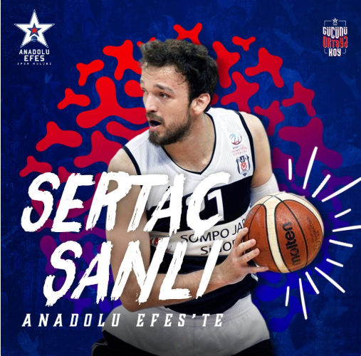 1+1 yıllığına lacivert beyazlı ekiple anlaşan Sertaç Şanlı için Anadolu Efes Kulübü Twitter hesabından bir açıklama yayınladı. Açıklama şöyle; "Basketbola altyapımızda başlayan ve uzun yıllar forma giyen A Milli Erkek Basketbol Takımımızın başarılı pivotu Sertaç Şanlı ile 1+1 yıllık sözleşme imzaladık! Hoş geldin Sertaç!"