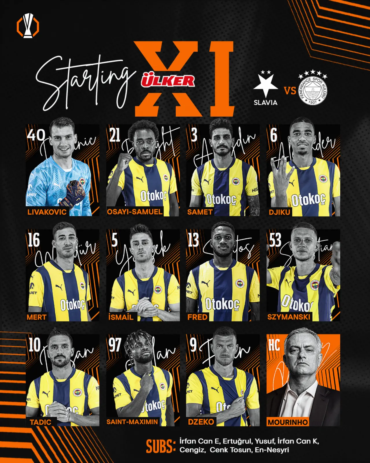 Fenerbahçe: Livakovic, Osayi, Samet, Djiku, Mert Müldür, İsmail, Fred, Tadic, Szymanski, Saint Maximin, Dzeko.