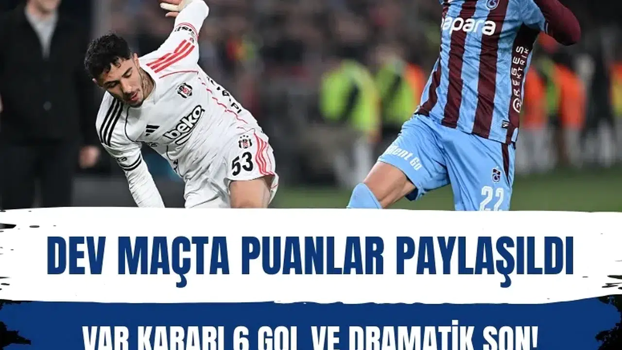 Trendyol Süper Lig’in 16. haftasında futbolseverleri ekran başına kilitleyen mücadelede Trabzonspor ile Beşiktaş, Akyazı’da 3-3 berabere kaldı. Baştan sona heyecan fırtınası şeklinde geçen maçta Beşiktaş, 3-1 öne geçmesine rağmen 10 kişi kalınca üstünlüğünü koruyamadı. Trabzonspor ise müthiş bir geri dönüşe imza atarak 1 puanı hanesine yazdırdı.