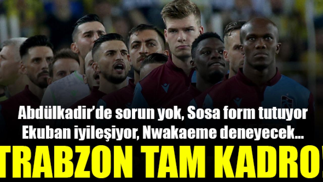 Süper Lig'in 30. haftasında deplasmanda Galatasaray ile karşılaşacak olan Trabzonspor'de sakatlıktan yeni çıkan Sosa'nın yanısıra Nwakaeme, Caleb Ekuban, Abdülkadir Parmak ve Alexander Sörloth'un durumları merak ediliyor. Teknik heyet ve sağlık ekibi oyuncuların en iyi şekilde maça yetişmesi için seferber oldu.