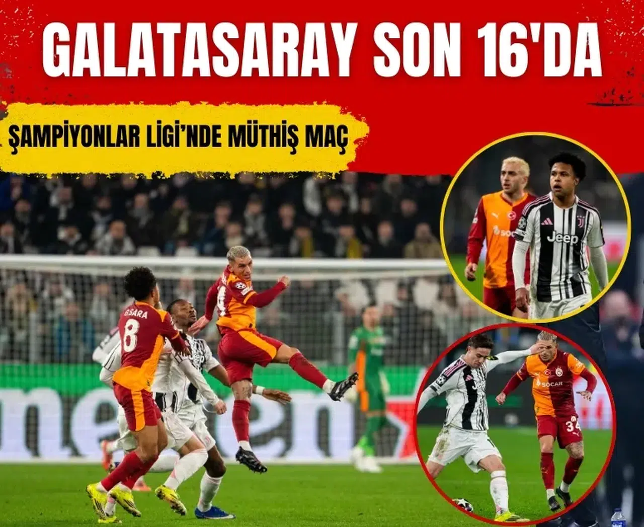 UEFA Şampiyonlar Ligi son 16 play-off turu rövanş karşılaşmasında Galatasaray, deplasmanda Juventus’a konuk oldu. İlk maçı 5-2 kazanan sarı-kırmızılı ekip, Allianz Stadyumu’nda oynanan mücadeleden 3-2 mağlup ayrıldı. Ancak iki maç sonunda oluşan 7-5’lik toplam skorla adını son 16 turuna yazdırdı. Juventus ise turnuvaya veda etti.