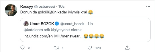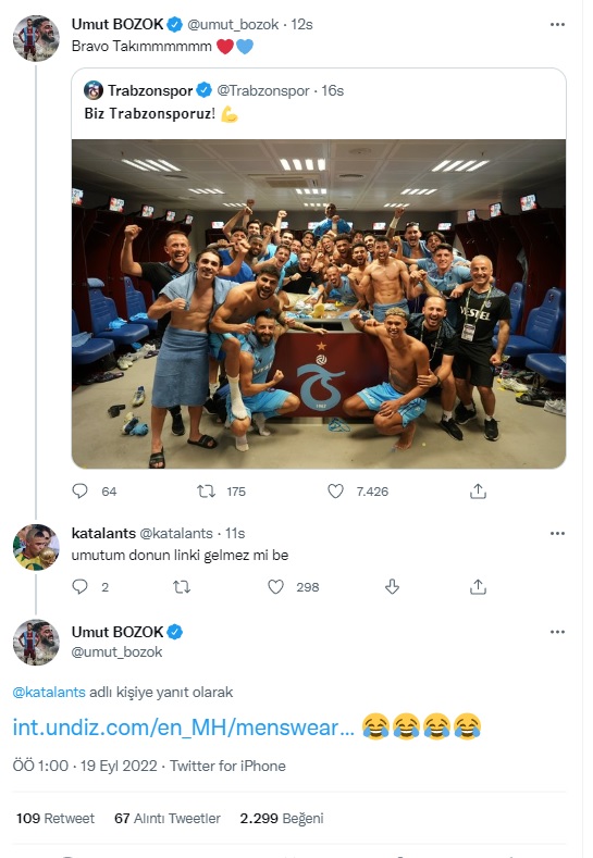 Spor Toto Süper Lig'in 7'inci haftasında Gaziantep FK'yı 3-2 yenen Trabzonspor, milli araya moralli girerken goller Trezeguet, Bakasetas ve Marc Bartra'dan geldi. Son dakikada 3 puan sevinci yaşayan bordo mavililerde Umut Bozok da hücum hattında gol aradı ancak rakip fileleir sarsamadı. Milli oyuncu mücadelede görünen iç çamaşırı nedeniyle marka soran bir taraftara ise giydiği ürünün satın alma adresini gönderdi.