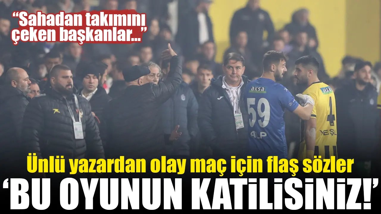 Dün akşam Esenyurt Necmi Kadıoğlu Stadyumu'nda oynanan İstanbulspor - Trabzonspor maçı, konuk takımın 2'inci golü sonrası yarıda kaldı. Ev sahibi ekibin başkanı Ecmel Faik Sarıalioğlu'nun takımını sahadan çekmesi sonrasında iki takım soyunma odasına gitti. Bu kararı ve yaşananları değerlendiren Yazar Bülent Timurlenk, sert ifadeler kullandı. İşte o yazıdan kesitler...