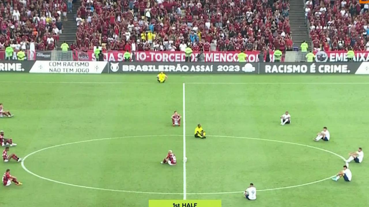 Müsabakanın başlama vuruşunun ardından İspanya'da ırkçı saldırılara maruz kalan Vinicius Junior İçin sahadaki tüm oyuncular ve hakemler oturma eylemi gerçekleştirdi.