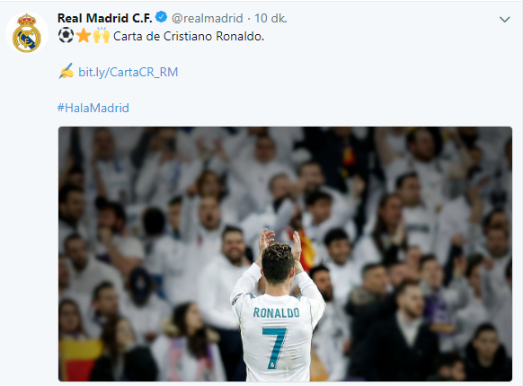 Real Madrid twitter hesabından "Cristiano Ronaldo'ya mektup" başlıklı bir yazı yayınladı.