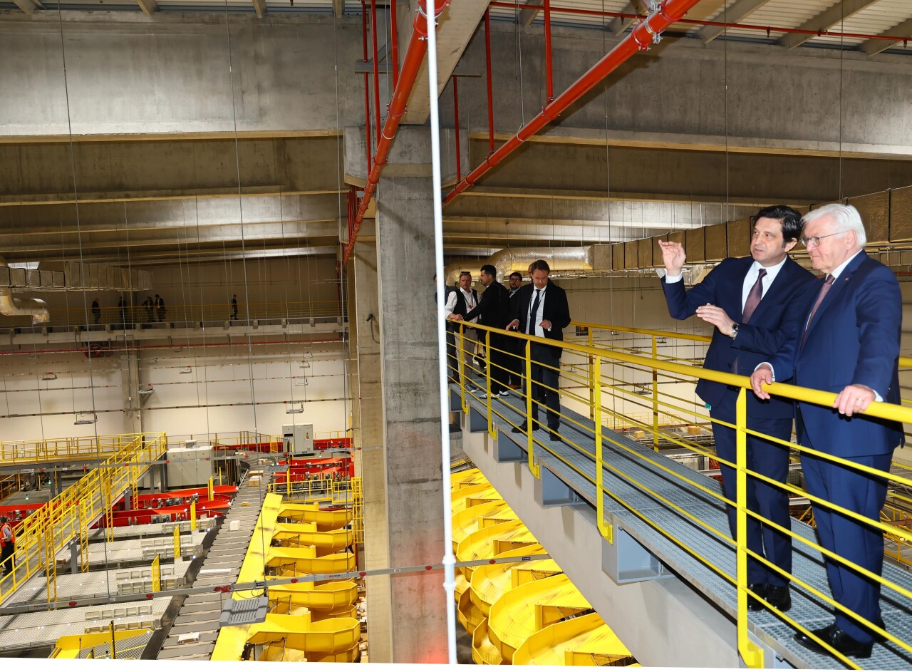 Merkezdeki lojistik işlemlerini yerinden izleyen Steinmeier, Tonguç ve Demiroğlu'ndan DHL'nin Türkiye operasyonları hakkında brifing aldı.