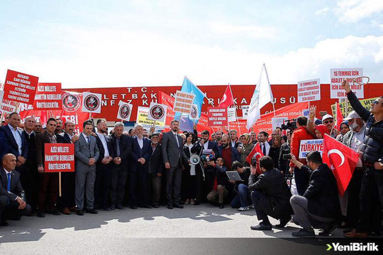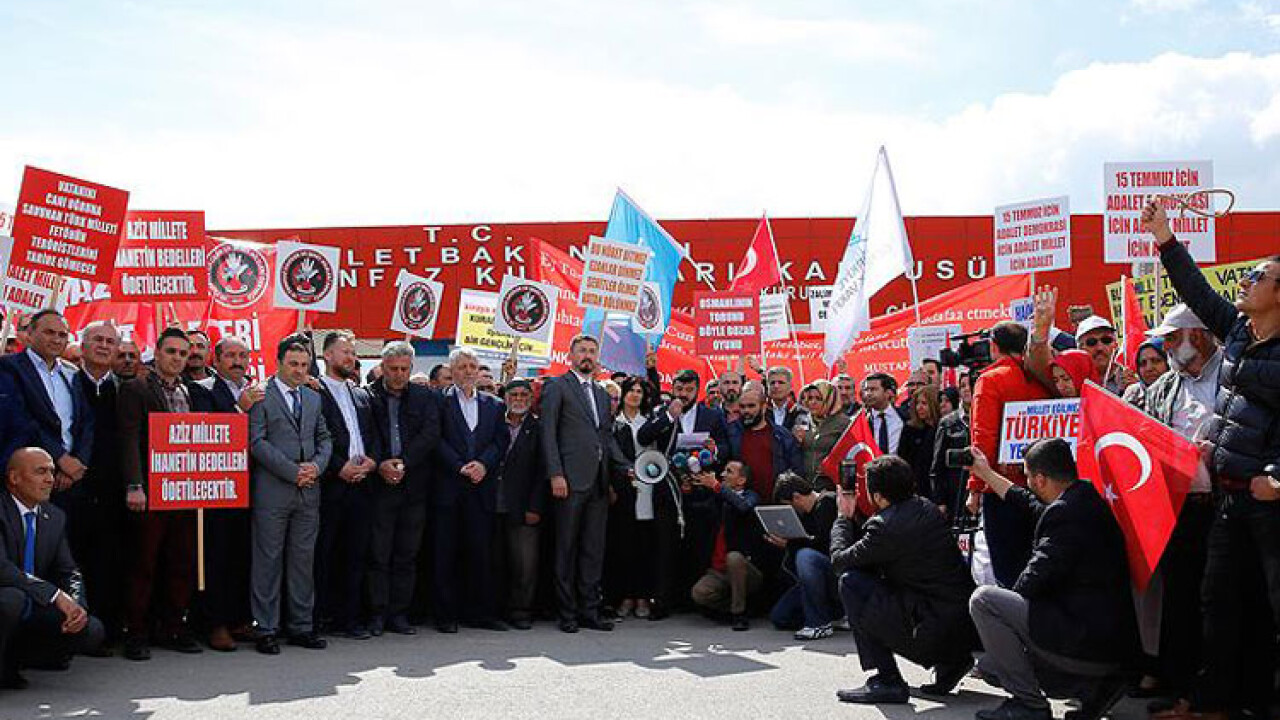 Fetullahçı Terör Örgütü'nün (FETÖ) 15 Temmuz darbe girişimi sırasında Genelkurmay Karargahı'nda yaşanan eylemlere ilişkin, aralarında sözde "Yurtta Sulh Konseyi" üyelerinin de bulunduğu 221 sanığın yargılandığı davanın öncesinde 15 Temmuz gazileri, şehit aileleri ve sivil toplum kuruluşları darbecileri protesto etti.