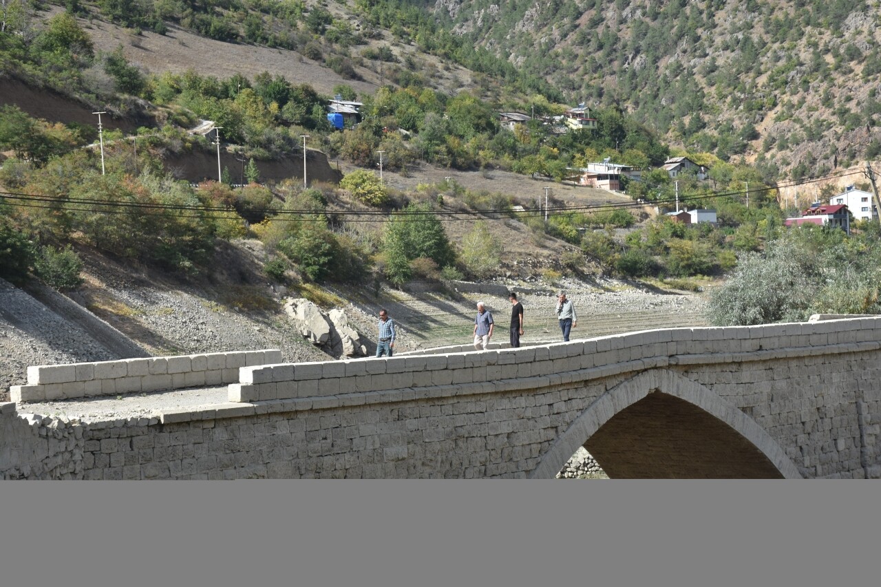 Köprünün baraj suları yükselince sular altında kaldığını belirten Orhan, "Sular çekildiğinde tekrar gün yüzüne çıkıyor." dedi.