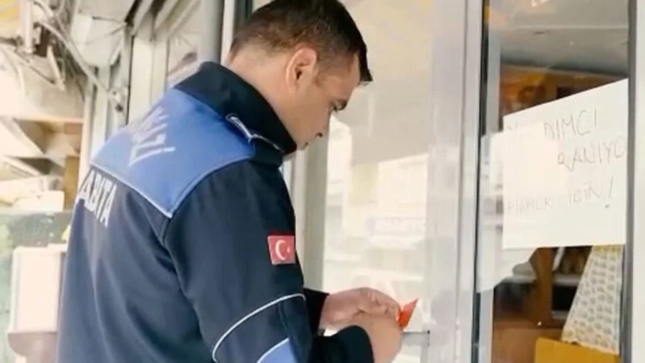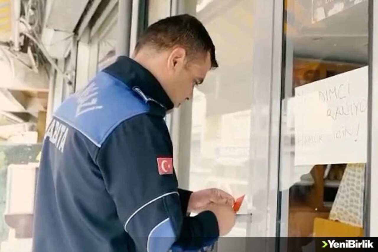 Kapatılan iş yerinin camına Cumhurbaşkanı Recep Tayyip Erdoğan'ın posterinin asıldığı görüldü.