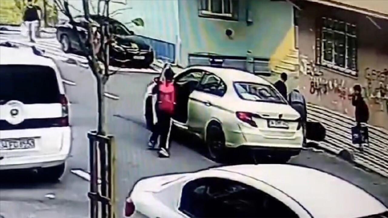 Sultangazi'de ortaokul öğrencisinin, bir çocuğa çarptıktan sonra sürücünün inmesi üzerine hareket eden otomobilin el frenini çekerek olası bir kazayı önlediği anlar kameraya yansıdı.