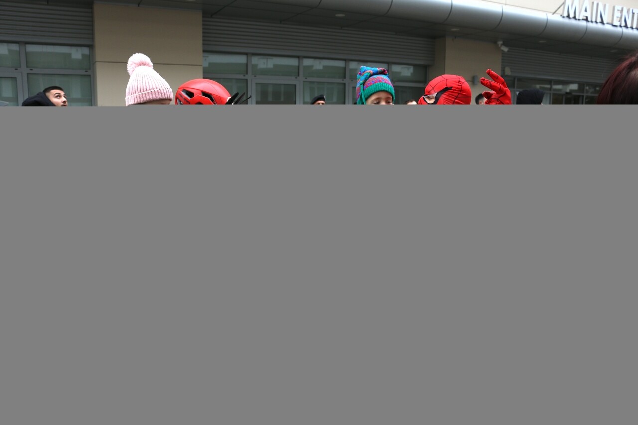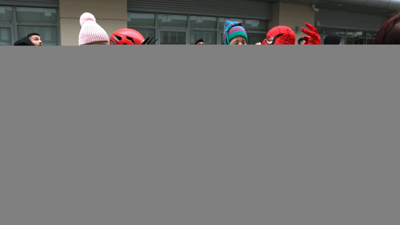 Yaklaşan yılbaşı dolayısıyla QKUK'un Pediatri Kliniğinde tedavi gören çocukları sevindirmek için düzenlenen etkinlik kapsamında süper kahraman kostümleri giyen "Klubi Alpin Prishtina" topluluğu üyesi dağcılar, çatıda kurulan düzenek sayesinde binadan halatla indi.