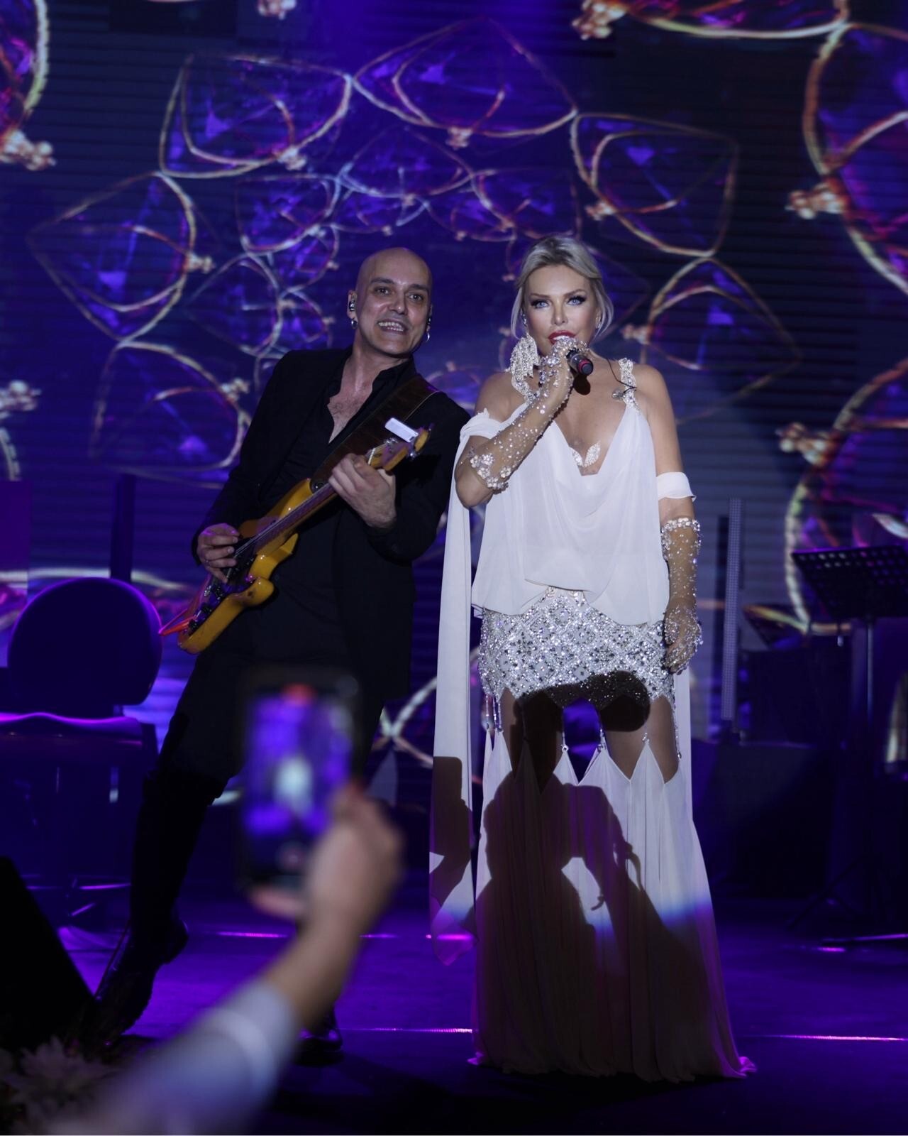 Sahne öncesi basın mensupları ile ayaküstü sohbet eden sanatçı, modaci Burcu Sedef’ in tasarladigi şık kıyafeti ile göz kamaştırdı. Pekkan, "Bu akşam bayram vesilesiyle Grand Saphire’in açılışını da yapmis olacagiz ,Sapphire ailesine Kıbrıs'a böyle değerli bir yatirimi kazandirdiklari icin teşekkür ediyorum.
