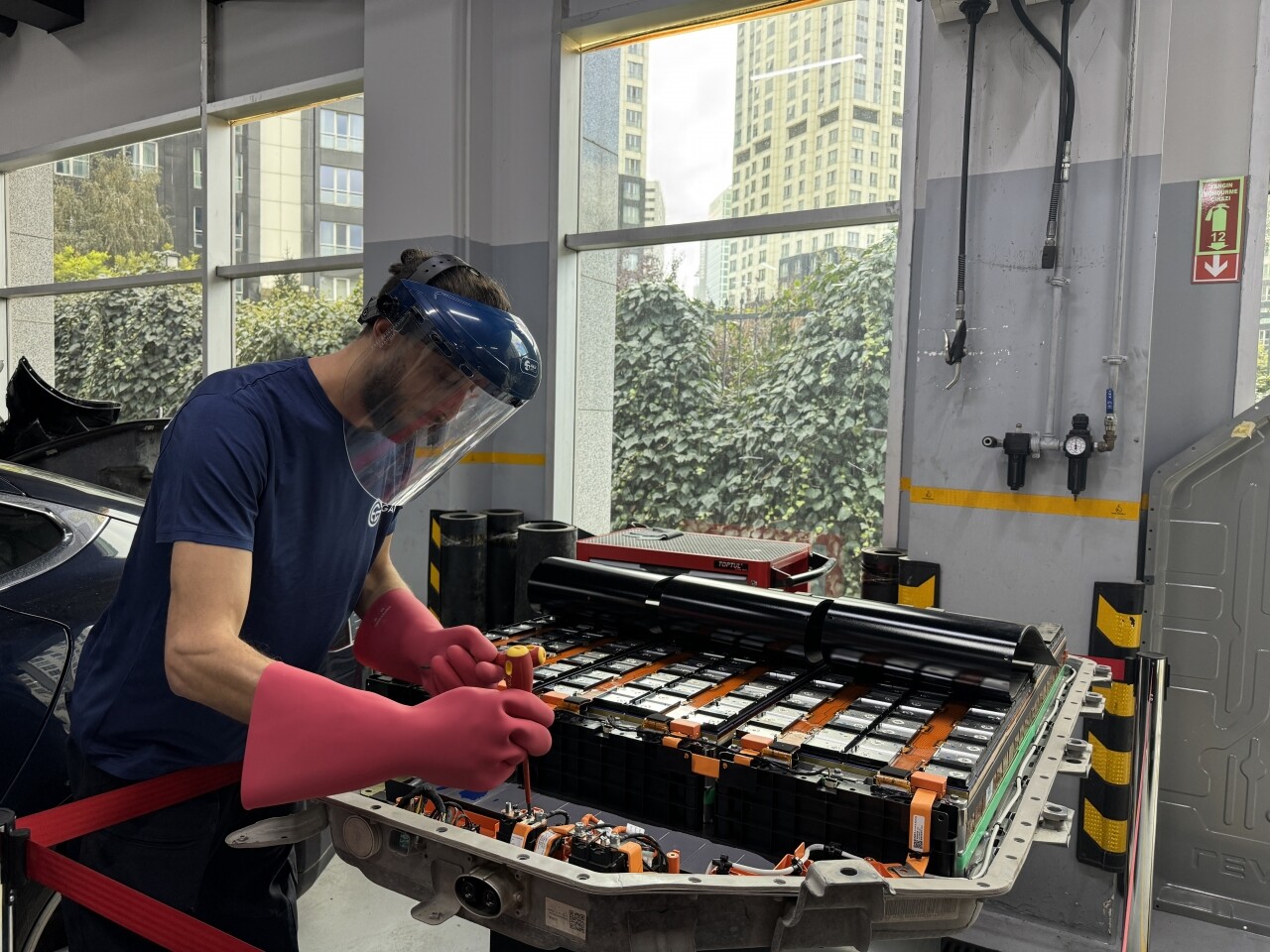 Yaklaşık 9 yıl içten yanmalı motorlarda ustalık yapan Volkan Baykal, 6 yıldır elektrikli otomobil tamirciliği yaptığını, elektrikli otomobilin bakım maliyetinin aşırı düşük olduğunu vurguladı.
