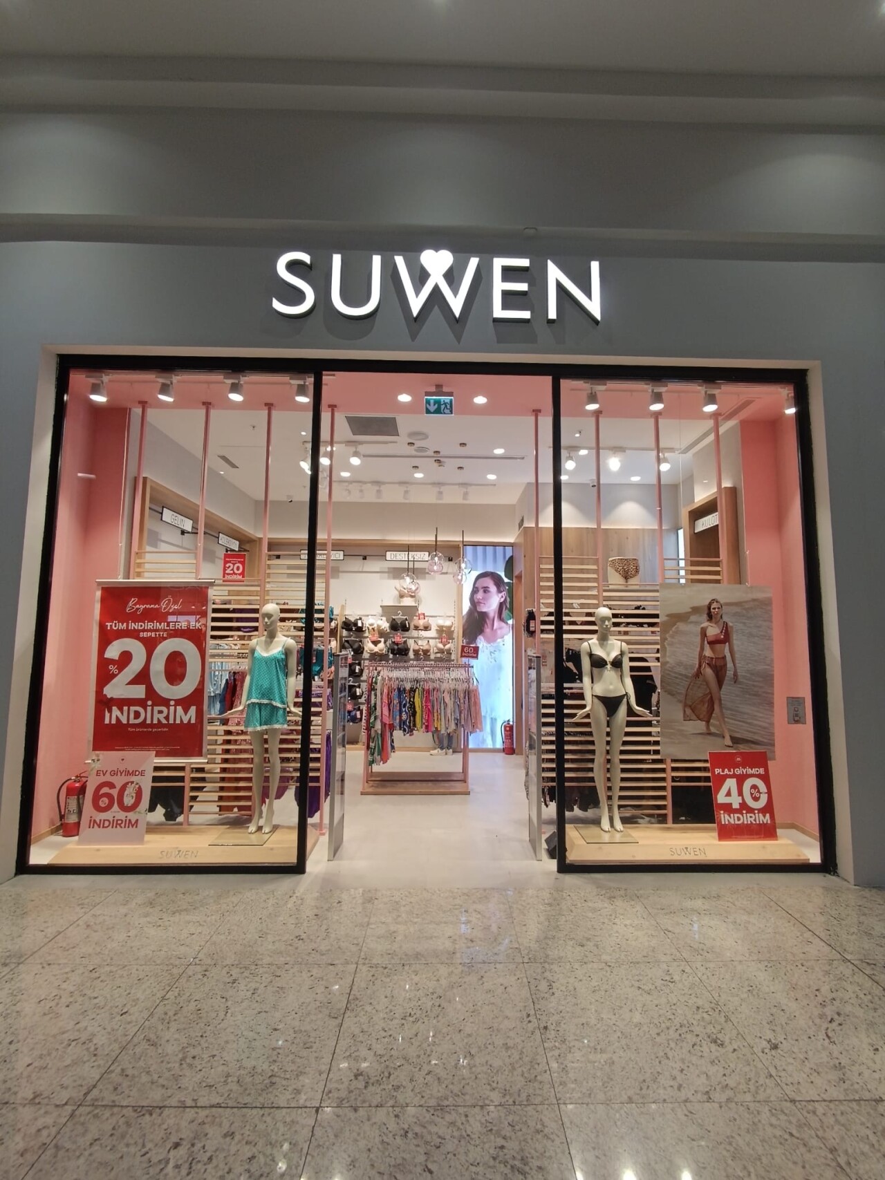 SUWEN, İGA mağazasında sıcak tonlardaki mobilya renkleri ve yuvarlak hatlardaki ürün sergileme alanlarında, iç giyim, ev giyim ve plaj giyim gibi İGA misafirlerinin seyahatlerinde en çok ihtiyaç duyacakları ürünleri sunuyor.