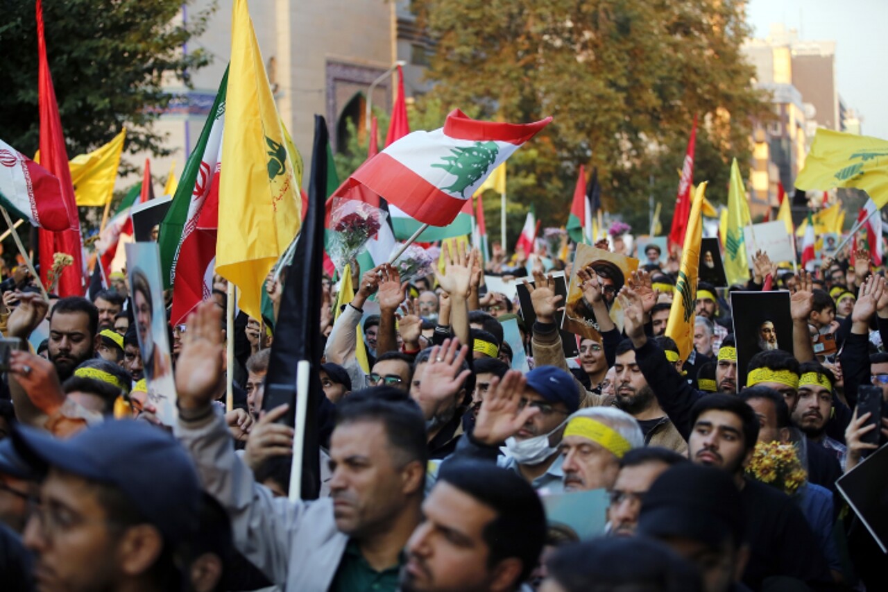 Tahran'da Filistin Meydanı'nda toplanan binlerce kişi, İsrail'in Lübnan'da Hizbullah lideri Nasrallah ve İranlı Tuğgeneral Abbas Nilfuruşan'ın da yaşamını yitirdiği saldırılar ile Gazze'de bir yıldır sürdürdüğü soykırım ve savaş suçlarını protesto etti.