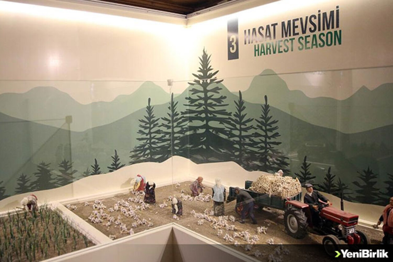 "Sarımsak, Taşköprü için önemli bir bitki, en önemli tarım ürünü. Ekonomik getirisinden dolayı da bölgede, 'beyaz altın' olarak nitelendiriliyor. Burada maketler aracılığıyla sarımsağın serüveni anlatılıyor. Başta sürülen tarlalara kadınlar sarımsağı ekiyor. Sonraki süreçte sarımsağın çapa ve sulanması yer alıyor. Taşköprü sarımsağının hasadı temmuzun ilk ya da ikinci haftası yapılır. Hasat da anlatılıyor. En sonda da kurutulan sarımsak pazara götürülerek satılıyor. Maketler aracılığıyla sarımsağın hikayesi, serüvenini burada görebilirler."