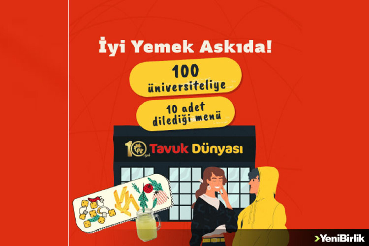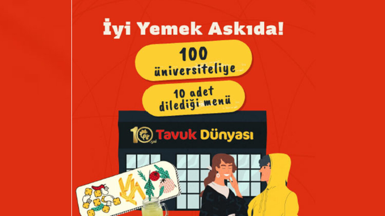 Bu yıl 10'uncu yılını kutlayan Tavuk Dünyası, Askıda Ne Var ile yan yana gelerek üniversite öğrencilerini "iyi yemek" ile buluşturuyor. Bu kampanya ile 100 üniversite öğrencisine 10'ar adet menü hediye edecek olan Tavuk Dünyası, toplamda 1000 menüyü üniversiteliler için Haziran ayında askıya bırakıyor. Kampanyaya katılmak için Tavuk Dünyası ve Askıda Ne Var sosyal medya hesaplarını takip etmek gerekiyor.