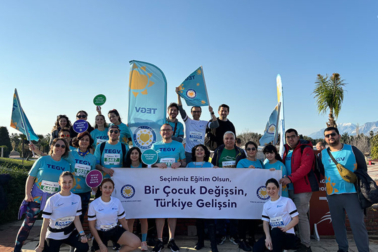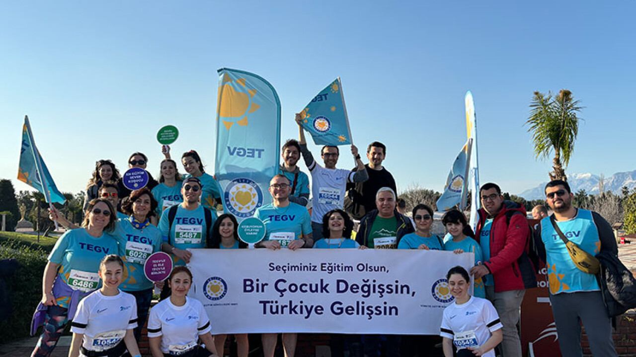 Bu yıl 3 Mart’ta Antalya’da düzenlenen Runtalya Maratonu’na 16’ncı kez katılan Türkiye Eğitim Gönüllüleri Vakfı’nın (TEGV) maraton kapsamında başlattığı kampanyaya 96 koşucu ve 791 bağışçı destek verdi. Çağdaş nesillerin yetişmesi için Türkiye genelindeki etkinlik noktalarında ilköğretim çağındaki çocuklara nitelikli eğitim desteği sağlayan TEGV adına maratona katılan koşucular “Bir Çocuk Değişir Türkiye Gelişir” kampanyasıyla adımlarını nitelikli eğitim desteğine dönüştürdüler. “TEGV ile Hayaller Peşinden Koşmaya Değer” sloganıyla yürütülen kampanyaya bağışlar 18 Mart’ta sona erdi. Bu kampanyayla birlikte 415 çocuğa nitelikli eğitim desteği sağlandı. Ayrıca TEGV Antalya Suna-İnan Kıraç Eğitim Parkı’nda çocuklara destek veren gönüllülerden bazıları maratona katılırken bazıları da maraton boyunca parkurda koşuculara destek verdi.