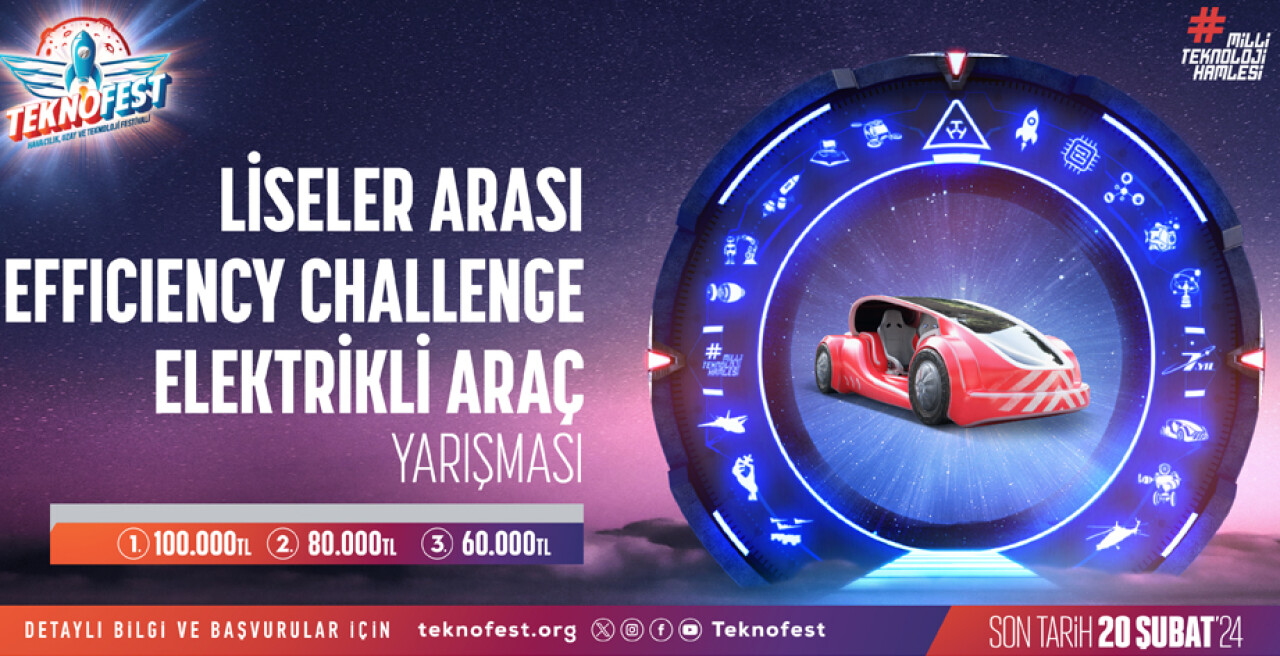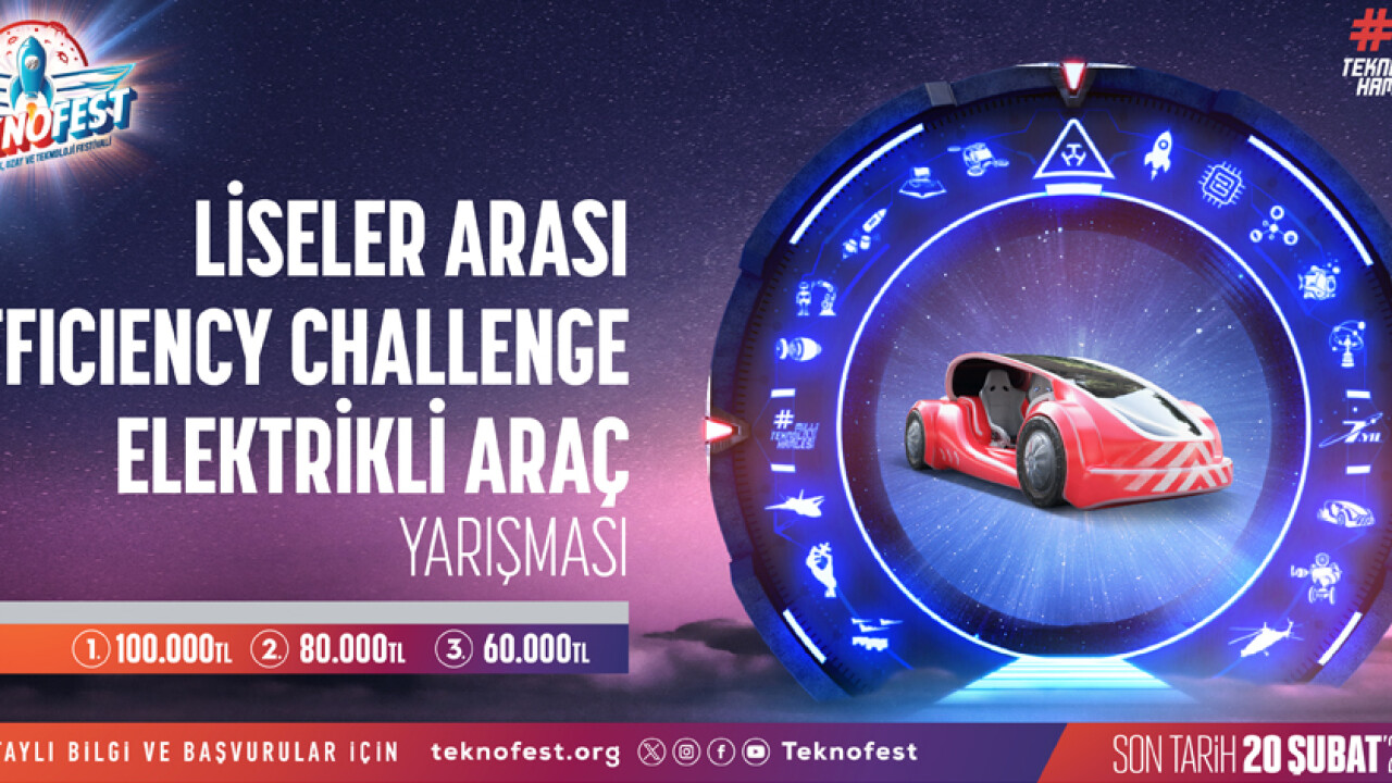 TEKNOFEST Havacılık, Uzay ve Teknoloji Festivali kapsamında TÜBİTAK tarafından düzenlenen Efficiency Challenge Elektrikli Araç Yarışları başvuruları devam ediyor. Türkiye ve yurt dışında öğrenim gören tüm üniversite öğrencileri (lisans, yüksek lisans, doktora) ile bu yıl lise öğrencilerinin de katılımına açık olan yarışmaya başvurular 20 Şubat'a kadar yapılabiliyor.