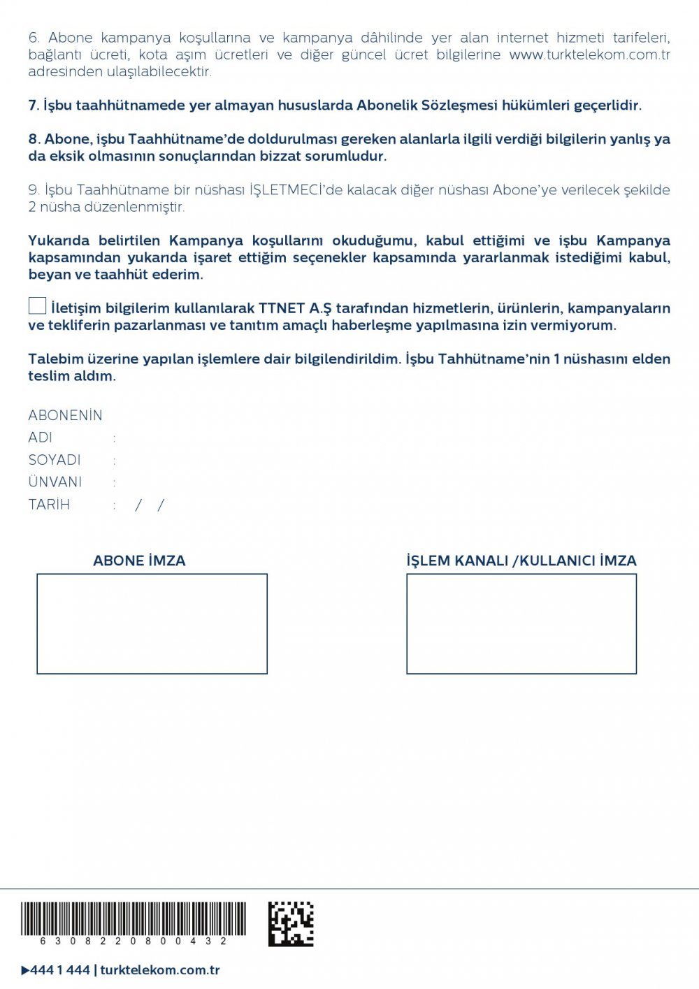 - Kampanya internet altyapı olanakları ile sınırlıdır. Türk Telekom kampanya süresini uzatma hakkını saklı tutar. Kampanya detayları için 444 1 444 Türk Telekom Müşteri Hizmetleri'nden de bilgi alabilirsiniz.