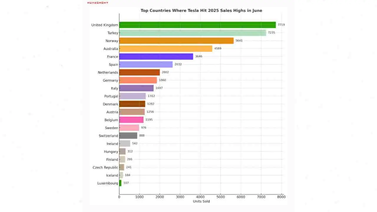Avrupa genelinde Haziran ayında toplam 39 bin 395 adet Tesla aracı satıldı. Bu araçlardan 37 bin 885'i, satış verileri net olarak kaydedilen 19 ülkeden gelirken; geriye kalan 1.510 adetlik satış ise 10 ülkeden tahmini verilerle elde edildi. Bu rakamlar, elektrikli otomobillerde güçlü bir satış grafiğini ortaya koyarken, özellikle Türkiye'nin konumu oldukça dikkat çekici. Birleşik Krallık 7 bin 719 adet satışla lider konumda bulunurken, Türkiye ise 7 bin 235 araçlık satışla Avrupa genelinde ikinci sırada yer aldı. Norveç, 5 bin 641 satışla üçüncü sırayı aldı.