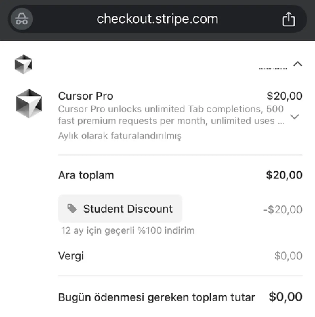 Cursor Pro, öğrencilere özel bir yıl boyunca ücretsiz Pro abonelik sunuyor. Bu pakette şunlar yer alıyor: