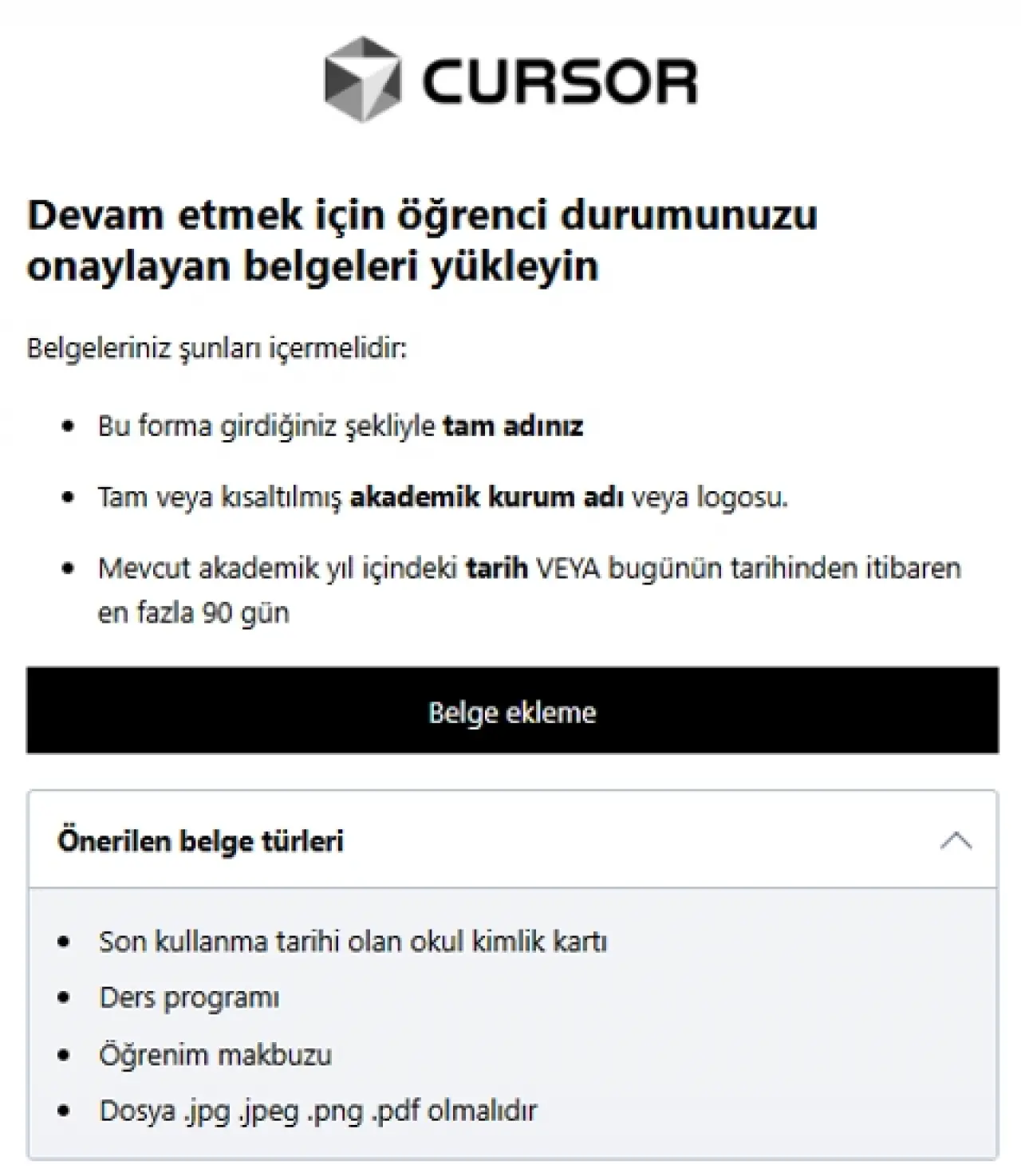 - Cursor'un resmi öğrenci sayfasını ziyaret et.
