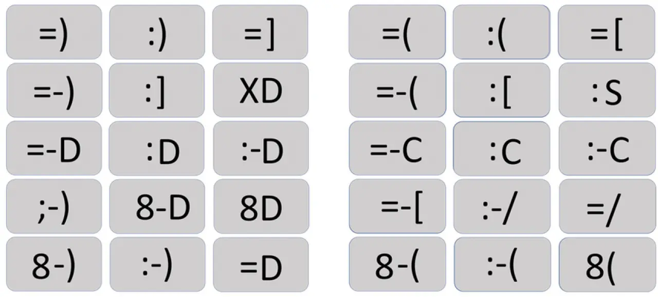 Emoticon, yani duygusal ikon, klavyedeki karakterlerle oluşturulan yüz ifadeleridir. 🙂 veya 😞 gibi emojilere benzeseler de aslında temel fark, emoticon’ların karakter diziliminden oluşmasıdır. Örneğin:
