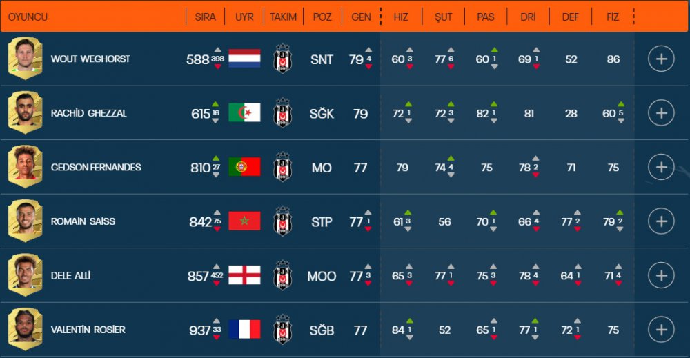 Bu sezon Beşiktaş ile oynayacak oyun severleri ortalama bir kadro değeri bekliyor. İlk sırada Burnley'den kiralanan Wout Weghorst var. Siyah beyazlıların kadrosunda hiçbir oyuncu 80 veya üzerinde bir ortalamaya sahip değil. Hollandalı golcü 79 ortalama ile oyunda yer alıyor. Rachid Ghezzal 79 ile sahnede. Gedson Fernandes, Romain Saiss, Dele Alli ve Valentin Rosier 77 reytingli olarak açıklandı.